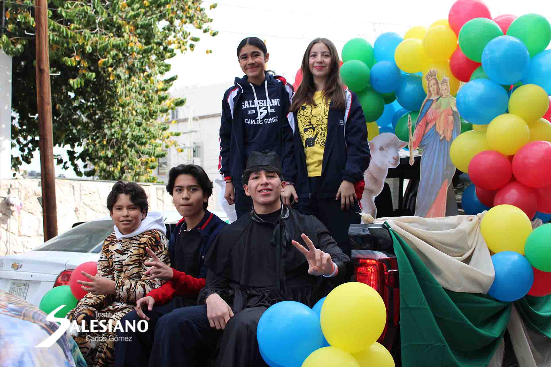 Las celebraciones fueron inauguradas oficialmente el 14 de febrero con una colorida caravana de carros alegóricos, que partió del Jardin de Tequisquiapan hacia las instalaciones de la institución. Alumnos y maestros acompañaron este recorrido festivo, teniendo como protagonistas a los jóvenes, quienes viajaron sobre camionetas decoradas con referencias a los sueños de San Juan Bosco, llenando las calles de alegría y entusiasmo.